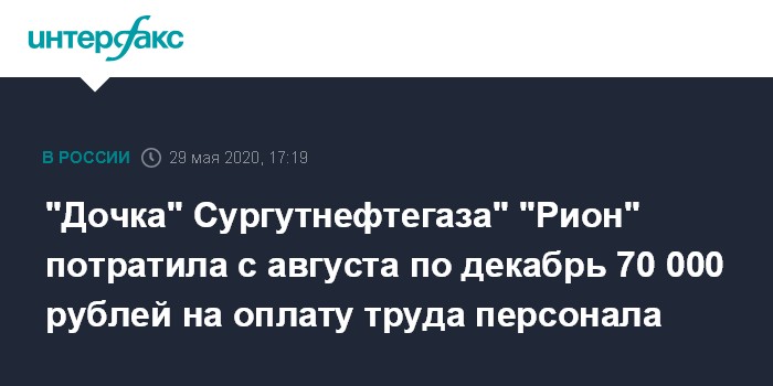 "Дочка" Сургутнефтегаза" "Рион" потратила с августа по декабрь 70 000 рублей на оплату труда персонала