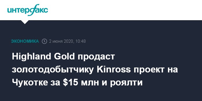 Highland Gold продаст золотодобытчику Kinross проект на Чукотке за $15 млн и роялти