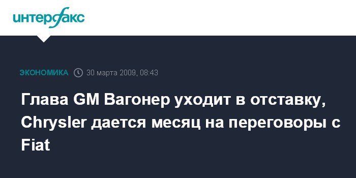 Глава GM Вагонер уходит в отставку, Chrysler дается месяц на переговоры с Fiat
