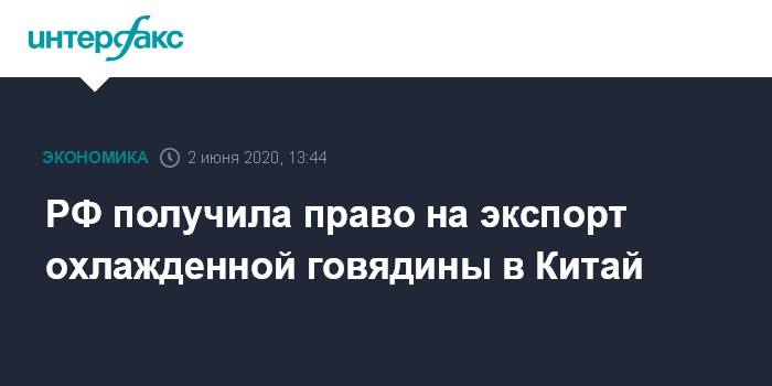 Москва. 2 июня. INTERFAX.RU - Россия получила право на экспорт охлажденной говядины в Китай.