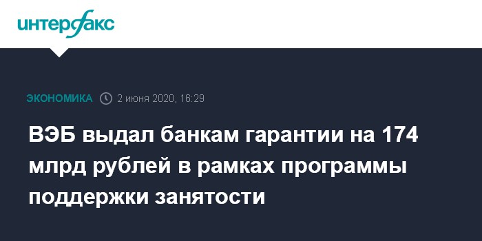 ВЭБ выдал банкам гарантии на 174 млрд рублей в рамках программы поддержки занятости