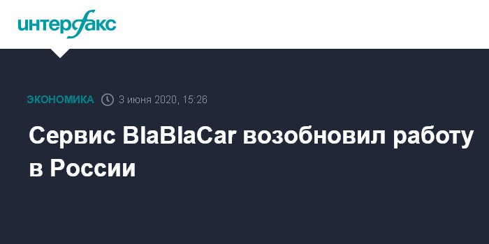 Москва. 3 июня. INTERFAX.RU - Карпулинговый сервис BlaBlaCar, который позволяет автовладельцам находить попутчиков для совместных поездок и делить между собой транспортные расходы, возобновляет работу в России после того, как два месяца назад добровольно приостановил работу в стране из-за COVID-19.