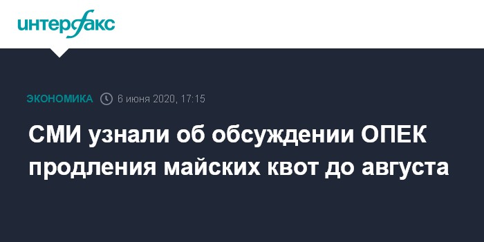 Москва. 6 июня. INTERFAX.RU - Страны ОПЕК обсуждают продление майских квот до августа, передало в субботу агентство Bloomberg со ссылкой на проект итогового коммюнике.