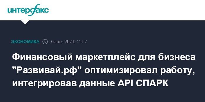 Москва. 9 июня. INTERFAX.RU - Финансовый маркетплейс для бизнеса "Развивай.рф", совместный проект Mail.ru Group и ВЭБ.РФ, объявил об успешной оптимизации работы платформы за счет интеграции данных API СПАРК.