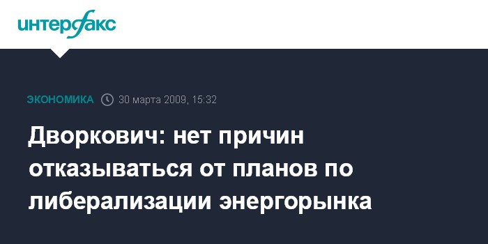Дворкович: нет причин отказываться от планов по либерализации энергорынка