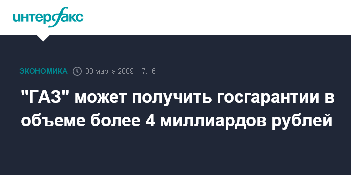 Москва. 30 марта. INTERFAX.RU - Премьер-министр РФ Владимир Путин считает возможным предоставить ОАО "ГАЗ" госгарантии в объеме более 4 млрд рублей на реструктурирование задолженности. "Считаю возможным предоставить необходимый объем государственных гарантий - это чуть больше 4 млрд рублей - для того, чтобы полностью реструктурировать задолженность "ГАЗа" перед кредиторами", - заявил Путин по итогам совещания в Тольятти в понедельник.