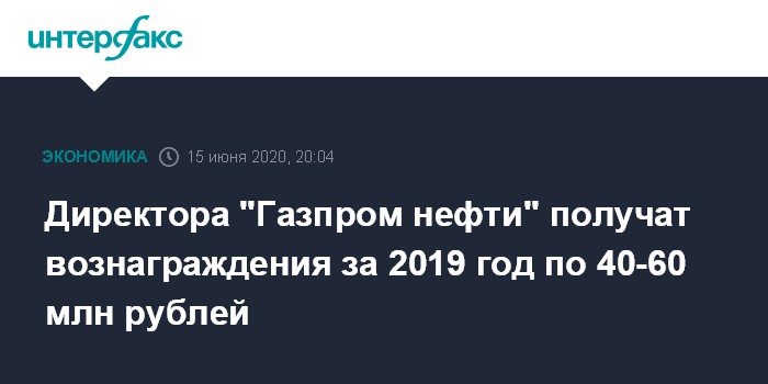 Директора "Газпром нефти" получат вознаграждения за 2019 год по 40-60 млн рублей