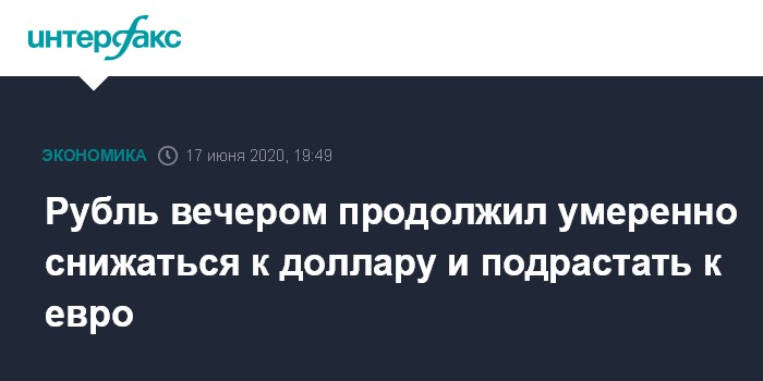 Москва. 17 июня. INTERFAX.RU - Доллар умеренно растет, евро, напротив, снижается на Московской бирже в среду вечером, рубль стабилен к бивалютной корзине в условиях разнонаправленной динамики в основных парах и в ожидании новых драйверов к движению.