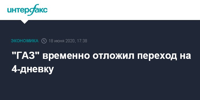 Москва. 18 июня. INTERFAX.RU - Горьковский автозавод ("ГАЗ", Нижний Новгород, входит в одноименную группу) временно отложил переход на 4-дневную рабочую неделю, будет оценивать ситуацию в июле после корпоративного отпуска.