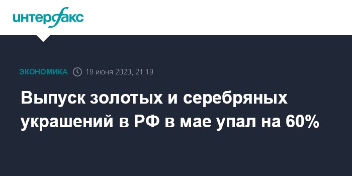 По подсчетам, всего в РФ за 5 месяцев 2020 года было произведено золотых и серебряных украшений на 23,4 млрд рублей, что на 33,6% меньше результата соответствующего периода прошлого года.