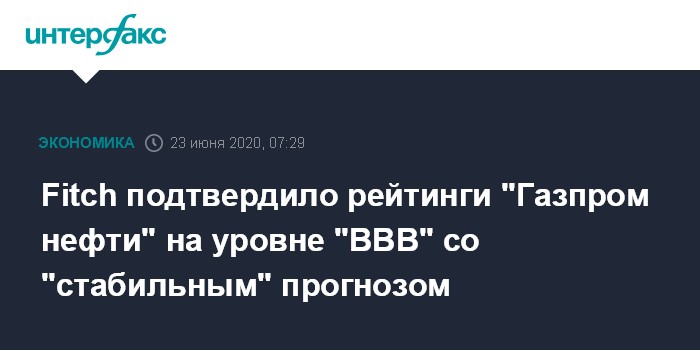 Москва. 23 июня. INTERFAX.RU - Международное рейтинговое агентство Fitch подтвердило долгосрочные рейтинги дефолта эмитента (РДЭ) в иностранной и национальной валюте ПАО "Газпром нефть" на уровне "BBB" со "стабильным" прогнозом.