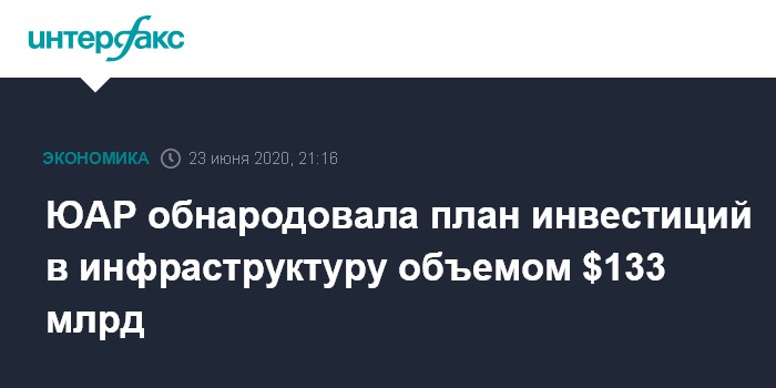"Мы поставили инфраструктурные проекты в центр стимулирующих мер, необходимых, чтобы наша экономика перешла к устойчивому восстановлению, - заявил Рамафоза. - В долгосрочной перспективе эти инвестиции увеличат потенциал нашей экономики, позволят сократить стоимость транспорта и повысить надежность услуг электроснабжения и других коммунальных услуг".