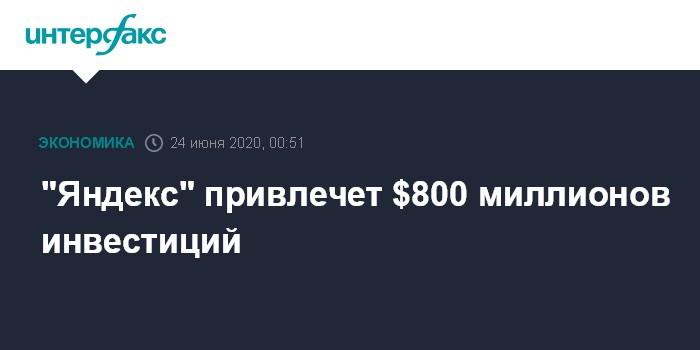 Москва. 24 июня. INTERFAX.RU - "Яндекс" привлекает финансирование в размере $800 миллионов за счет размещения вновь выпущенных акций класса А, говорится в пресс-релизе компании.