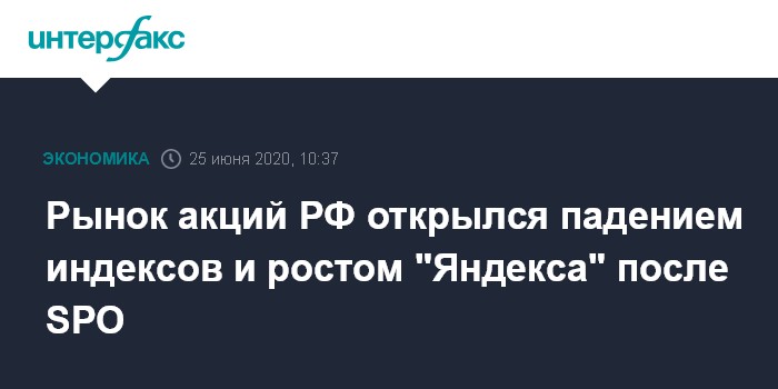 Москва. 25 июня. INTERFAX.RU - Рынок акций РФ открылся в четверг снижением цен blue chips на фоне общемирового падения из-за опасений медленного восстановления мировой экономики из-за дальнейшего распространения коронавируса COVID-19; индексы МосБиржи и РТС за минуту торгов потеряли 1,6-2,2%, при этом выросли акции "Яндекса" после успешного вторичного размещения бумаг (SPO).