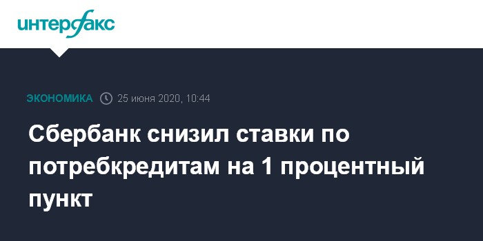 Москва. 25 июня. INTERFAX.RU - Сбербанк России снизил минимальную ставку по потребкредитам для физлиц на один процентный пункт (п.п.) - с 12,9% до 11,9%, говорится в пресс-релизе банка.