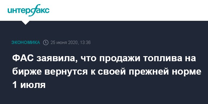 ФАС заявила, что продажи топлива на бирже вернутся к своей прежней норме 1 июля