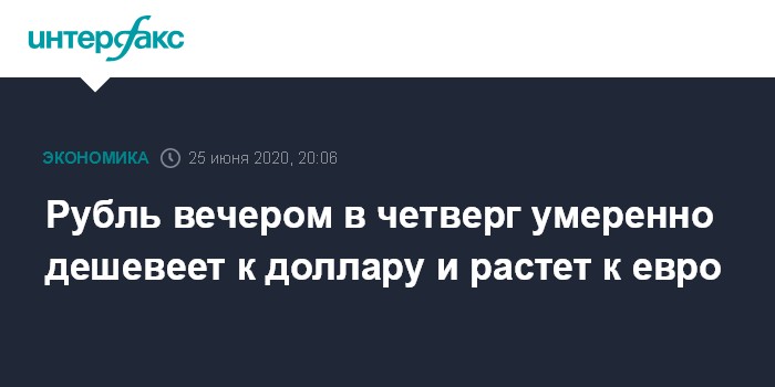 Москва. 25 июня. INTERFAX.RU - Доллар умеренно растет, евро дешевеет на Московской бирже в четверг вечером; рубль слабо меняется к бивалютной корзине в условиях разнонаправленной динамики в основных парах, следующих за котировками евро к доллару на глобальном рынке.