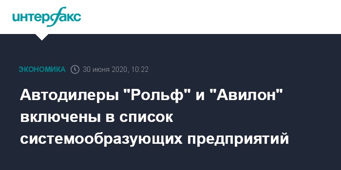 Автодилеры "Рольф" и "Авилон" включены в список системообразующих предприятий
