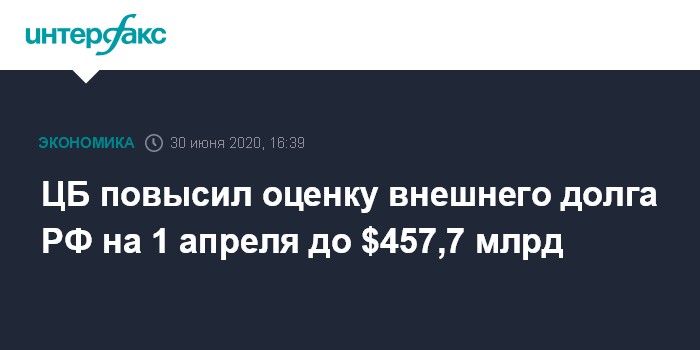 ЦБ повысил оценку внешнего долга РФ на 1 апреля до $457,7 млрд