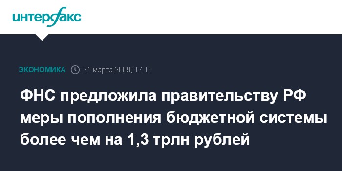 ФНС предложила правительству РФ меры пополнения бюджетной системы более чем на 1,3 трлн рублей