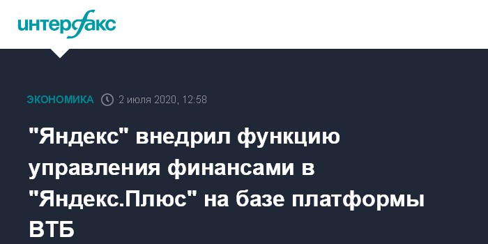 "Яндекс" внедрил функцию управления финансами в "Яндекс.Плюс" на базе платформы ВТБ