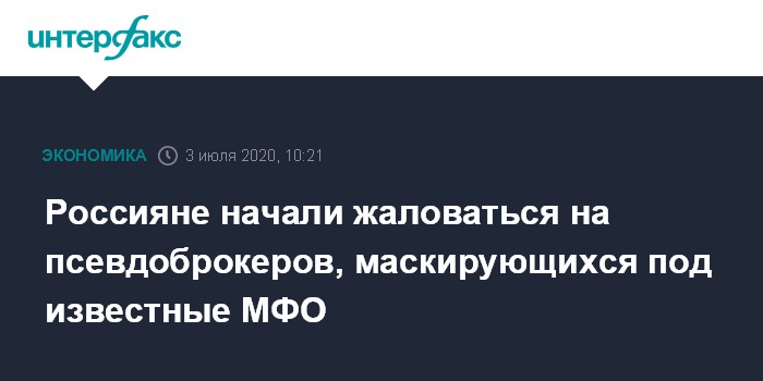 Москва. 3 июля. INTERFAX.RU - Россияне, желающие получить займы, стали жаловаться на псевдоброкеров, маскирующихся под известные микрофинансовые организации (МФО) и списывающих с клиентов сотни рублей еженедельно, пишет в пятницу "Коммерсантъ" со ссылкой на финансовые форумы и участников рынка.
