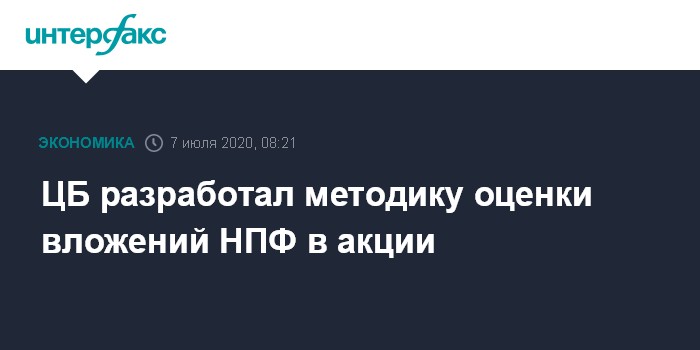 Москва. 7 июля. INTERFAX.RU - Банк России разработал методику оценки вложений пенсионных средств негосударственных пенсионных фондов (НПФ) в акции в рамках закона о фидуциарной ответственности. "Интерфакс" ознакомился с презентацией регулятора.