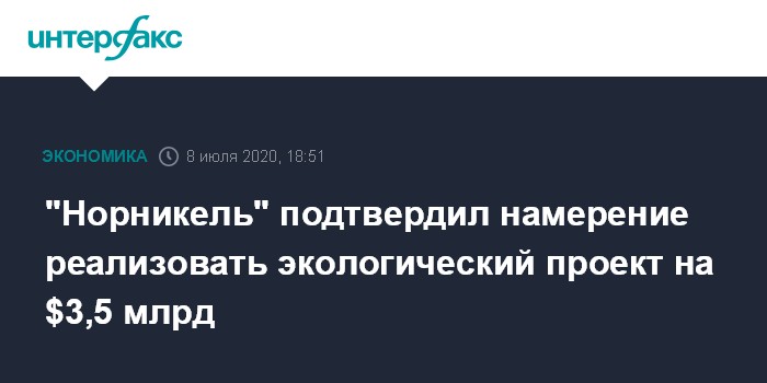 "Норникель" подтвердил намерение реализовать экологический проект на $3,5 млрд