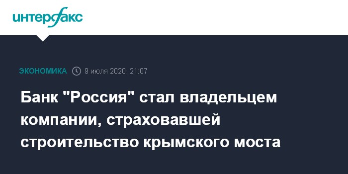 Москва. 9 июля. INTERFAX.RU - Банк "Россия" стал владельцем компании, самым известным проектом которой было страхование строительства Керченского моста.