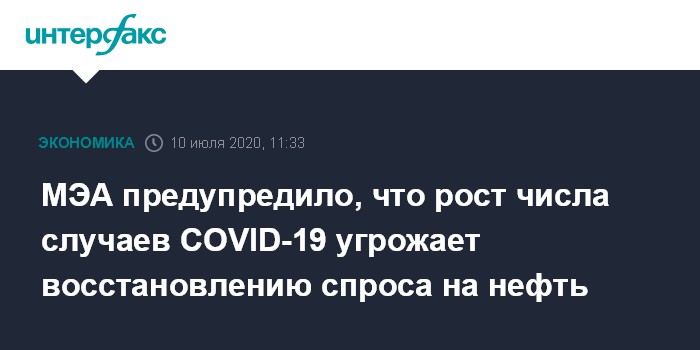 МЭА предупредило, что рост числа случаев COVID-19 угрожает восстановлению спроса на нефть