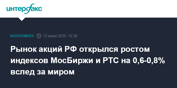 Рынок акций РФ открылся ростом индексов МосБиржи и РТС на 0,6-0,8% вслед за миром