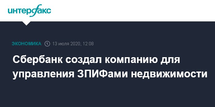 Москва. 13 июля. INTERFAX.RU - Сбербанк создал ООО "Сбер фонды недвижимости", на базе которого будет создана специализированная управляющая компания для закрытых паевых инвестиционных фондов (ЗПИФ) недвижимости, говорится в пресс-релизе банка.