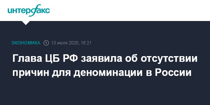 Москва. 13 июля. INTERFAX.RU - Обсуждение темы денежной реформы в РФ возникло на пустом месте: никаких причин для таких шагов нет, заявила председатель Банка России Эльвира Набиуллина на заседании совета по развитию финансового рынка при Совете Федерации.