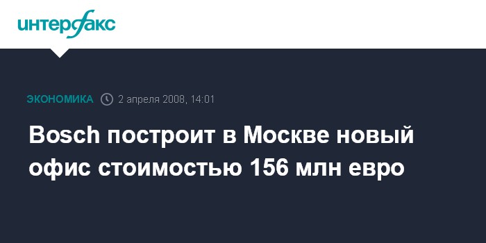 Москва. 2 апреля. INTERFAX.RU - Группа Bosch согласовала в среду проект строительства нового офиса в районе аэропорта "Шереметьево-2", сообщил на пресс-конференции в Москве генеральный директор группы компаний Bosch в России, Белоруссии, Украине и Казахстане Рене Шлегель. "Сегодня мы получили подпись правительства Москвы и будем строить новый офис, инвестируя в негоциями в него 156 млн евро", - уточнил он, добавив, что комплекс будет включать в себя офисные помещения, склады, учебный и сервисный центры и автопарковку. Общая площадь комплекса составит 94 тыс. кв. метров, земля под офис арендована на 49 лет.