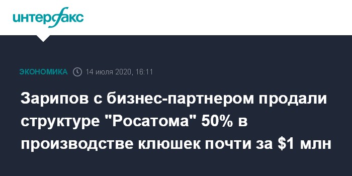 Год назад основатели "Заряда" хоккеист Данис Зарипов и его бывший коллега Иван Савин продали каждый по 25% UMATEX. Сумма сделки не раскрывалась. До сделки со структурой "Росатома" Зарипову и Савину принадлежало по 50% "Заряда".