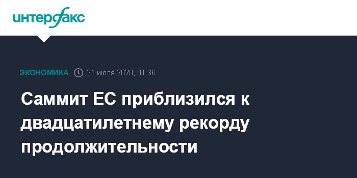 Москва. 21 июля. INTERFAX.RU - Саммит лидеров стран Евросоюза приблизился к рекорду продолжительности, установленному 7-11 декабря 2000 года в Ницце.