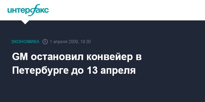 Санкт-Петербург. 1 апреля. INTERFAX.RU - ООО "Дженерал Моторз Авто" (Санкт-Петербург) во вторник остановила производство автомобилей до 13 апреля, сообщил "Интерфаксу" представитель завода.