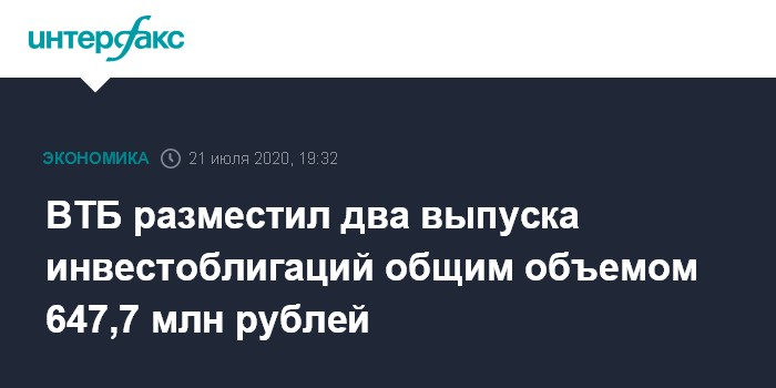 ВТБ разместил два выпуска инвестоблигаций общим объемом 647,7 млн рублей