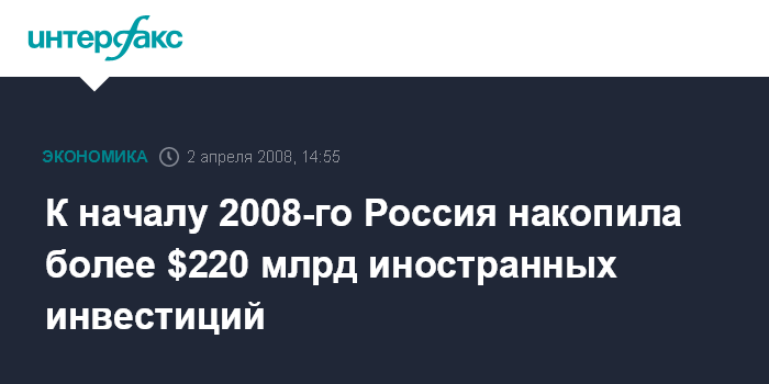 К началу 2008-го Россия накопила более $220 млрд иностранных инвестиций