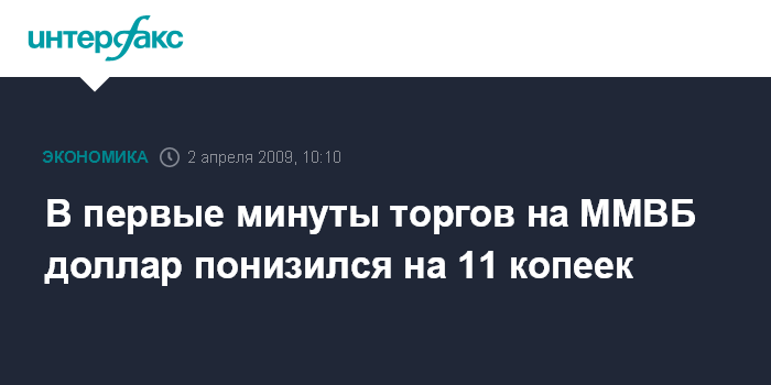 В первые минуты торгов на ММВБ доллар понизился на 11 копеек