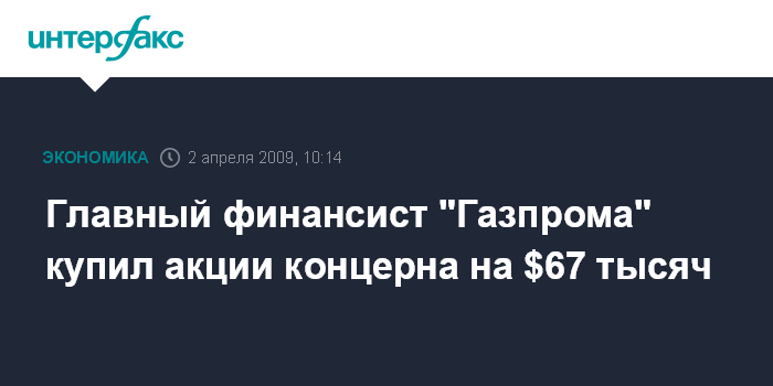Главный финансист "Газпрома" купил акции концерна на $67 тысяч