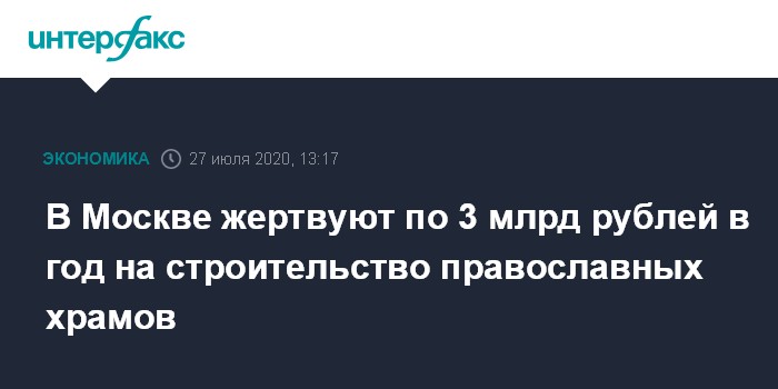 В Москве жертвуют по 3 млрд рублей в год на строительство православных храмов