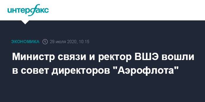 Министр связи и ректор ВШЭ вошли в совет директоров "Аэрофлота"