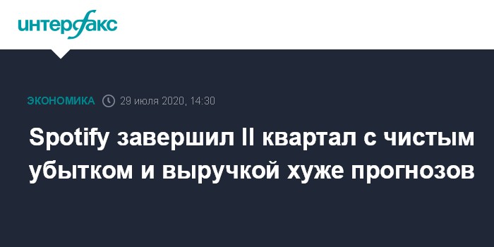 Как сообщается в пресс-релизе Spotify, чистый убыток в апреле-июне составил 356 млн евро ($418,4 млн), или 1,91 в расчете на акцию, по сравнению с 76 млн евро, или 0,42 евро на акцию, за аналогичный период 2019 года.