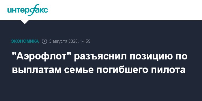 "Аэрофлот" разъяснил позицию по выплатам семье погибшего пилота