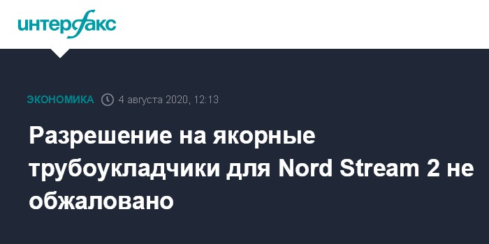 Москва. 4 августа. INTERFAX.RU - Разрешение использовать якорные трубоукладчики на достройке "Северного потока 2" не было обжаловано, сообщили "Интерфаксу" в Апелляционном совете Дании (Danish Energy Board of Appeal).