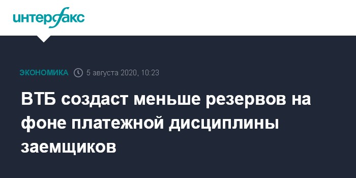 ВТБ создаст меньше резервов на фоне платежной дисциплины заемщиков
