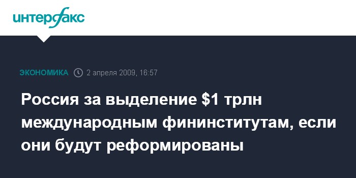 Россия за выделение $1 трлн международным фининститутам, если они будут реформированы