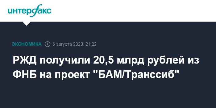 РЖД получили 20,5 млрд рублей из ФНБ на проект "БАМ/Транссиб"