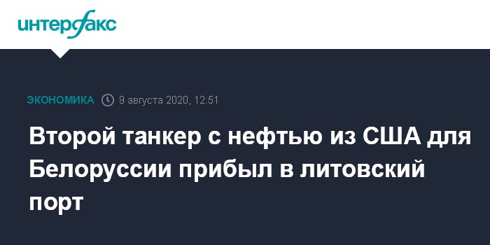 Москва. 9 августа. INTERFAX.RU - В порт Клайпеды прибыл второй танкер с американской нефтью для Белоруссии, сообщили в воскресенье в концерне "Белнефтехим".